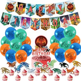 Dragon Anniversaire Décoration,Doyomtoy 32 pièces Dragon Ballon Décoration de gâteau Joyeux anniversaire Bannière Dragon Anniver