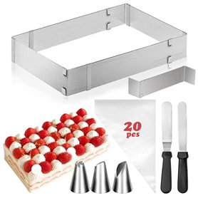 Cadre Patisserie Rectangulaire, Extensible Moule Carré, Moule Rectangulaire Patisserie en Acier Inoxydable, Cadre Patisserie ExtMatériaux de Haute Qualité : Le cadre à pâtisserie carré est fabriqué en acier inoxydable de qualité alimentaire, léger et durable, résistant à la corrosion et aux températures élevées.Aide à la Cuisine : La spatule droite et coudée est idéale pour appliquer diverses garnitures. Manche antidérapant pour un confort optimal.Moule à Gâteau Carré Extensible : Cadre de cuisson ajustable pour préparer deux gâteaux simultanément. Facile à former et à retirer.