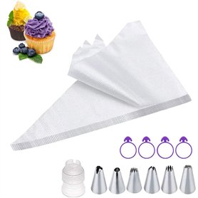 Ensemble de décoration de gâteau pour les amateurs et les professionnels par PHIEZC. Les 100 sacs à pâtisserie jetables vous permettent de décorer facilement vos desserts. Set complet : Comprend 100 Poches Patissières Jetables, 6 douilles, 1 adaptateur et 4 pinces à douille.Matériau sûr : Buse en acier inoxydable et poche en plastique PE alimentaire, sans danger pour la santé.Facile à utiliser : Conception antidérapante, transparente pour un contrôle précis de la décoration.