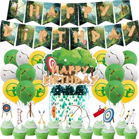 Décorations de Fête de Tir à l'Arc - Bannière d'Anniversaire, Décoration de Gâteau et Cupcake, Ballons - Flèches Incluses
