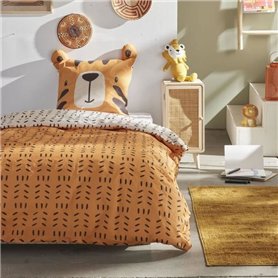 Ensemble parure de lit enfant + coffre de rangement pouf pliable - TODAY - JUNGLE - 140 x 200 cm - Coton