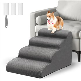 Otauoaea Escaliers pour Chiens à 4 Marches, Escalier pour Animaux en Éponge, Rampe pour Chien Antidérapant avec Housse en Tissu