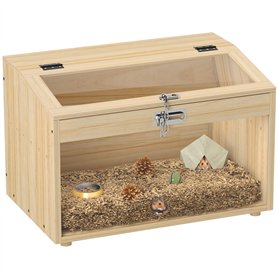 La cage à hamster PawHut en bois offre un espace spacieux et amusant pour votre animal. Dotée de fenêtres en acrylique pour une vue claire et de trous de ventilation pour une aération optimale. Accès facile grâce à son couvercle ouvrable.Spacieux et amusant : Offre un vaste espace intérieur pour creuser et explorer.Vue claire : Fenêtres en acrylique transparent pour une visibilité parfaite.Confort ventilé : Orifices de ventilation pour une aération optimale.