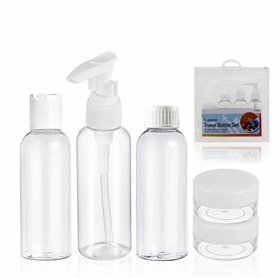 Kit de voyage transparent TCASENER, lot de 21 flacons rechargeables en plastique de 100ml. Idéal pour organiser et ranger vos affaires de manière pratique et élégante.Contenu de l'emballage : 4 flacons à couvercle rabattable de 100ml, 2 flacons pulvérisateurs de 100ml, 2 flacons à pression de 100ml, 2 pots de crème de 10g, 4 couvercles de rechange, 7 outils de distribution, 1 étiquettes adhésives.Matériaux de qualité : Fabriqués à partir de matériaux de qualité supérieure, ces sacs transparents vous permettent de voir facilement ce qu'il y a à l'intérieur.Compact et léger : Faciles à ranger dans votre valise ou sac à dos, ces flacons vous permettent d'économiser de l'espace pour le reste de vos affaires.