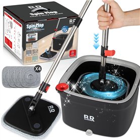 BUUROOHM Ensemble de seaux Si Mo 360° avec essoreuse et 4 tampons en microfibre avec poignée télescopique pré-ajustée avec sécha