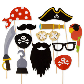 Set de 12 masques décoratifs amusants sur le thème des pirates pour donner une touche plus spéciale à la fête de vos enfants, ils seront toujours mémorables.Nom du produit : Lot de 12 Accessoires et Masques décoratifs à thème Pirate (Barbe, garfie, épée etc. À Utiliser sur des Photos et des fêtes d'anMarque : MopecComposition : Kit d'accessoires et masques décoratifs amusants (12 pièces) sur le thème de pirate, composé de articles visibles sur la photographie : colorés, ingénieux et très amusants