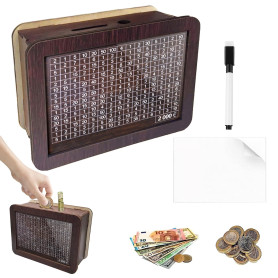- 【Tirelire en Bois Réutilisable】Vous recevrez 1 Tirelire avec Compteur et 1 marqueur, 1 Feuille Acrylique, avec un objectif d'épargne de 1000 euros 0 eurosŀ0 euros@00 euros au choix, ce qui rend l'épargne facile et ludique. La caisse de 10000 € n'est pas adaptée aux tableaux transparents