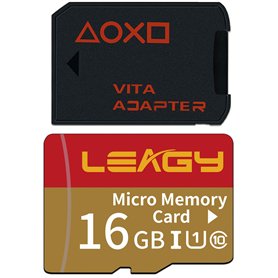 LEAGY Carte de jeu SD2Vita V3.0 PSVita avec carte micro SD 16 Go, carte mémoire flash microSDHC UHS-I haute vitesse avec adaptat