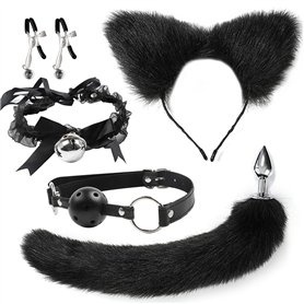 Ensemble noir d'oreilles, collier, pince, bâillon, bracelet, queue de renard, jouet de jeu d'imitation